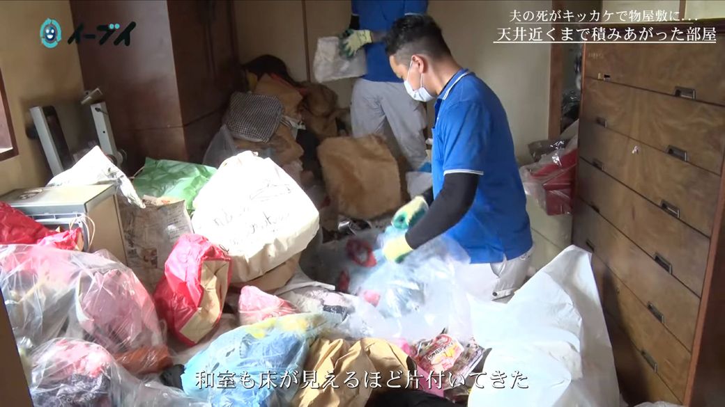 記事に戻る 「2.5トンの服の山」過酷なゴミ屋敷の"2日後の姿" "開かずの間"だった実家に入ると驚く光景が…の写真一覧 下に画像が続きます ようやく畳が見えてきた和室(画像:「イーブイ片付けチャンネル」より) 13/55