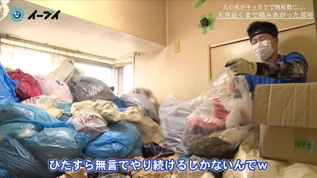記事に戻る 「2.5トンの服の山」過酷なゴミ屋敷の"2日後の姿" "開かずの間"だった実家に入ると驚く光景が…の写真一覧 下に画像が続きます ひたすら片付け続ける(画像:「イーブイ片付けチャンネル」より) 46/55