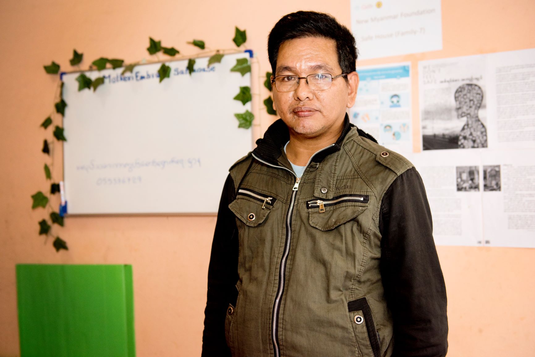 記事に戻る 徴兵を逃れ、軍から脱走したミャンマー人の前途 現地ルポ ミャンマー・タイ国境での支援活動の写真一覧 下に画像が続きます Mother Embraceの由来は「母の抱擁」。‘’Mother‘’にはアウンサンスーチー氏の意味も込められていると語るタンミインアウン代表(撮影:筆者) 7/7