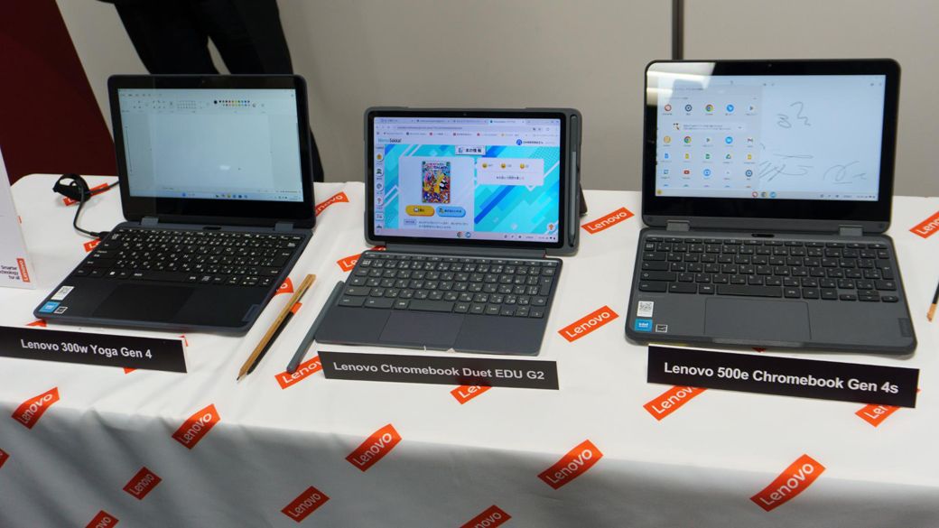 記事に戻る GIGA2.0でレノボが掲げる文教パソコンの理想型 子供による想定外の使用に耐える製品と教育コンテンツをパッケージの写真一覧 レノボ・ジャパンは、GIGAスクール構想の端末更新に合わせ、新ラインアップを発表した(筆者撮影) 1/6 下に画像が続きます レノボはChromebook 2製品とWindows 1製品を次期GIGAスクール構想向けにラインアップへ投入。いずれも文科省の予算(1台当たり5万5000円)に収まる値段で販売される(筆者撮影) 2/6