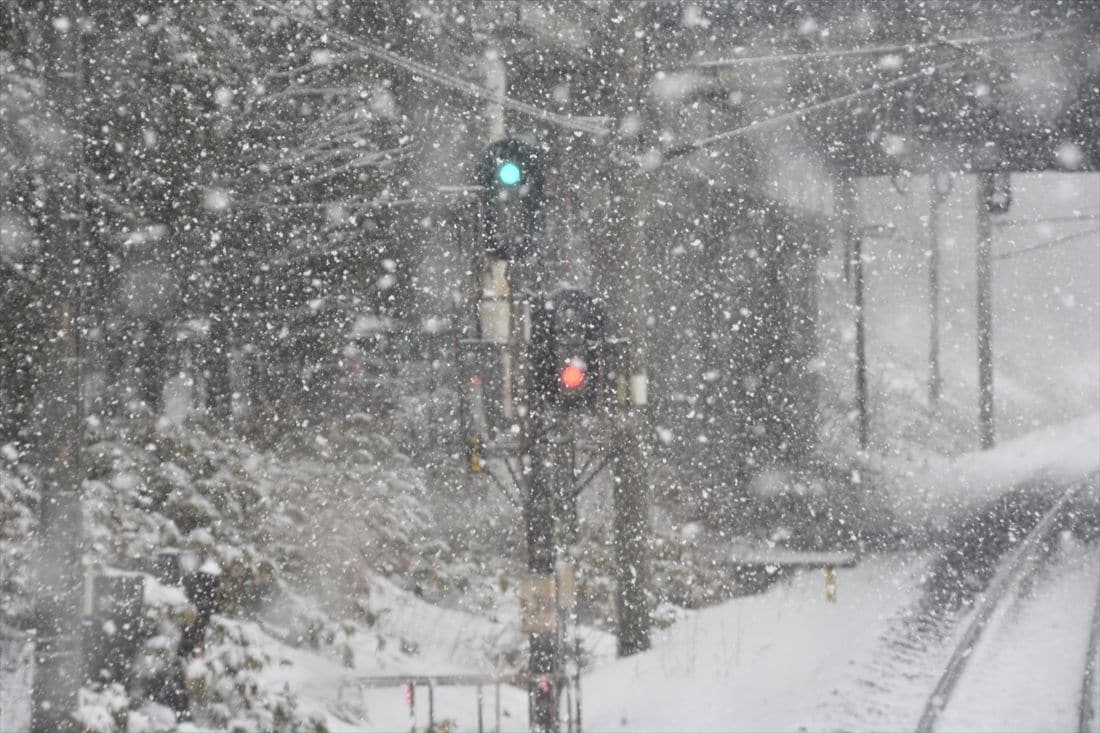 大雪だと信号が見えにくくなることもある(記者撮影)