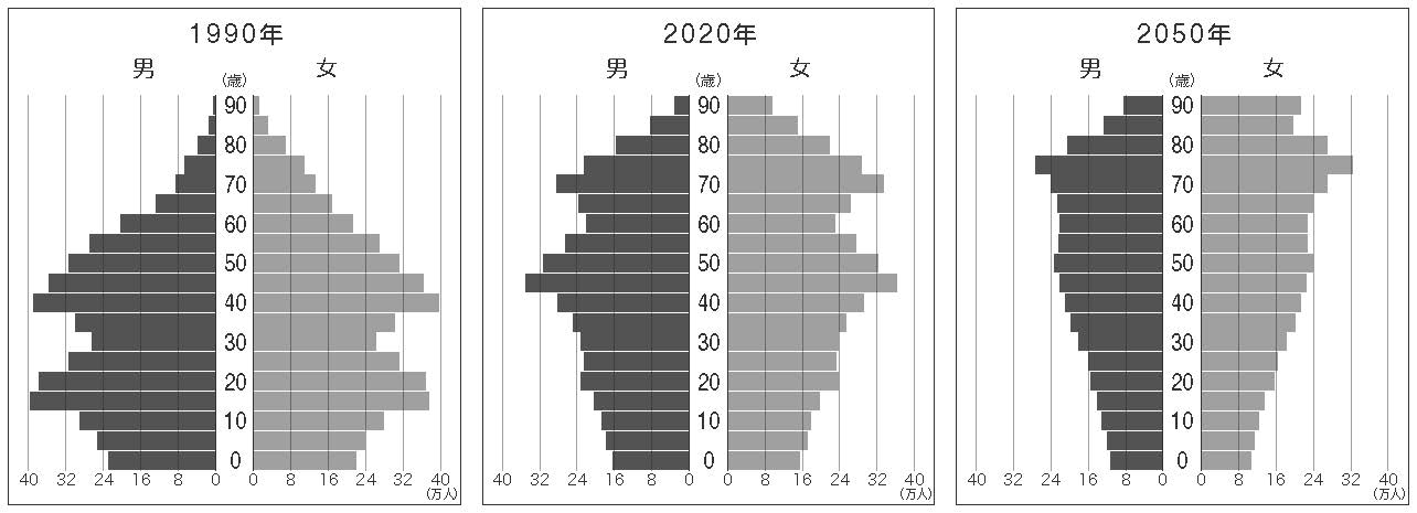 「2050年人口ピラミッド」地方に訪れる壊滅的未来 関東甲信越編に続いて全国の道府県データを公開の写真一覧