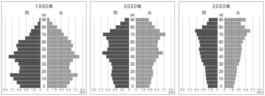 「2050年人口ピラミッド」地方に訪れる壊滅的未来 関東甲信越編に続いて全国の道府県データを公開の写真一覧