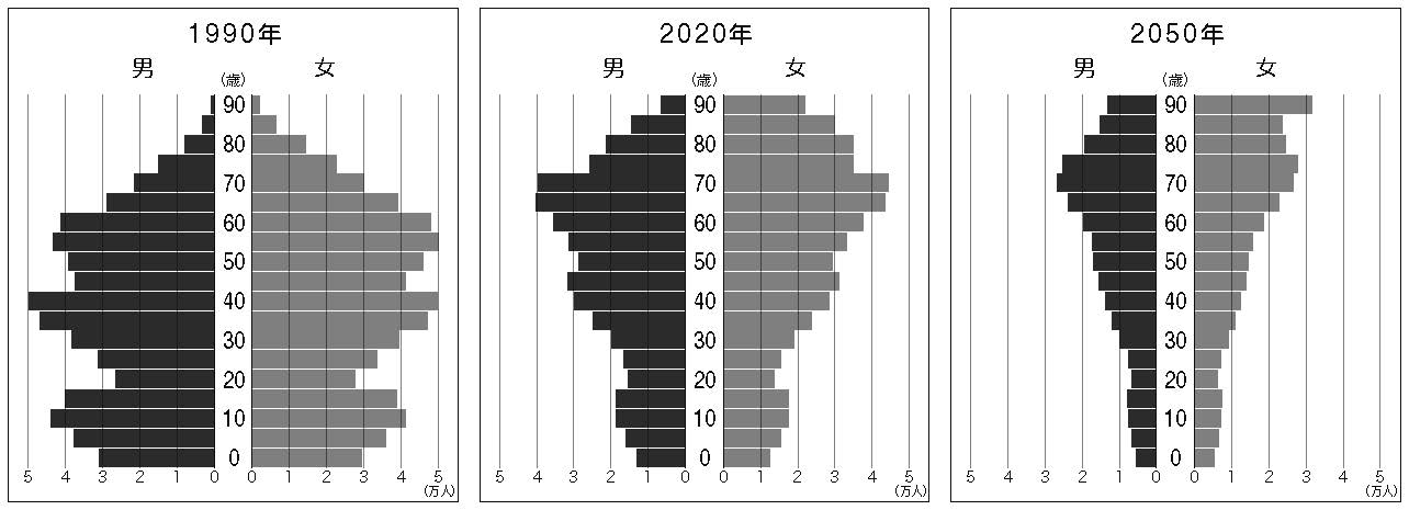 「2050年人口ピラミッド」地方に訪れる壊滅的未来 関東甲信越編に続いて全国の道府県データを公開の写真一覧