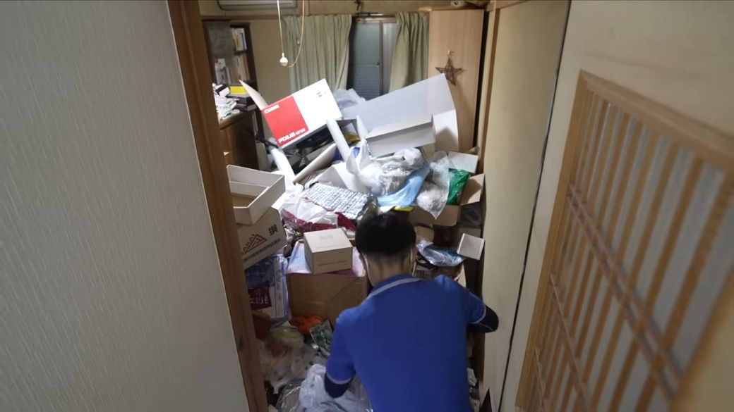 記事に戻る 「ゴキブリまみれの一軒家」6時間の壮絶清掃の中身 12トンものゴミ山に作業スタッフも悪戦苦闘の写真一覧 家の中でいちばんゴミが多い2階の和室(「(画像:「イーブイ片付けチャンネル」より」) 1/46 下に画像が続きます スタッフが仕分け作業を行うスペースもない(「(画像:「イーブイ片付けチャンネル」より」) 2/46