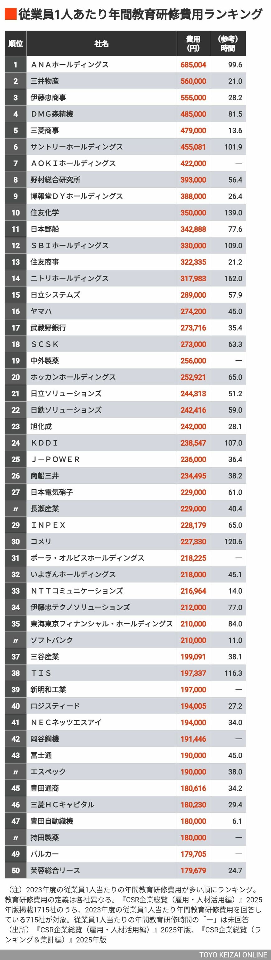 人手不足が深刻化する今、企業の「人への投資」がかつてないほど重要視されています。果たして各社は社員教育にどれだけ資金を投入し、どのような育成策を展開しているのでしょうか。最新ランキングから、日本企業の人材戦略の最前線に迫ります。