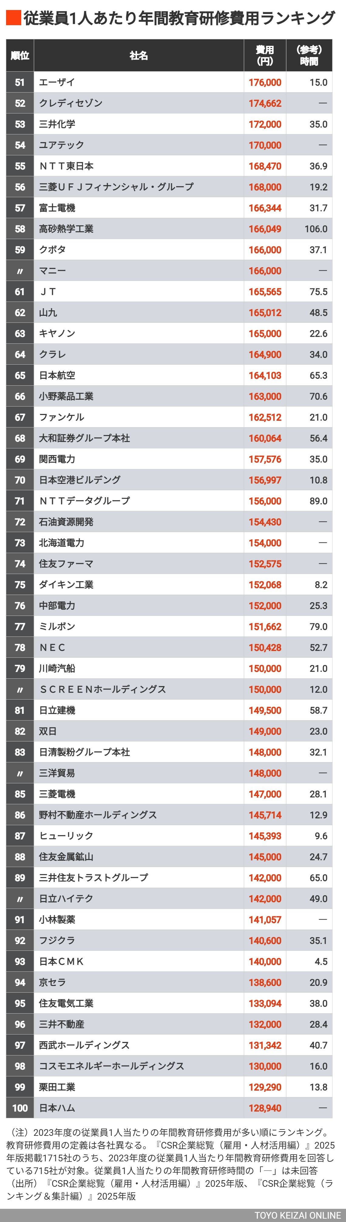社員教育・研修にお金をたっぷり使うトップ100社 トップは1人当たり68.5万円を使っているの写真一覧