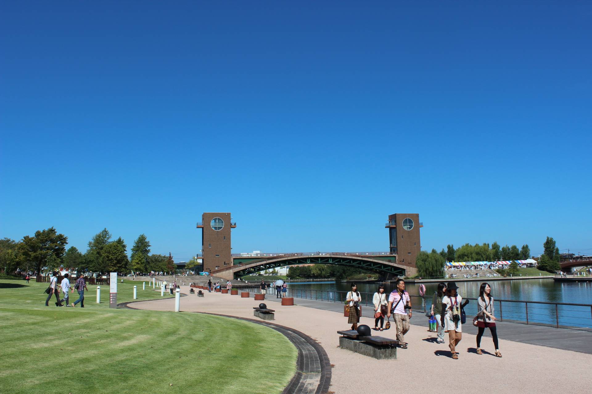 富山駅から歩いて9分ほど。街中に広がる「富岩運河環水公園」(写真提供:富山県ロケーションオフィス)