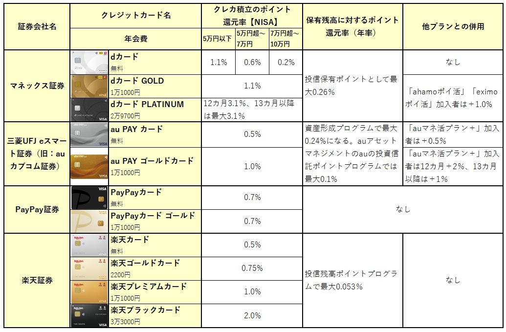 記事に戻る 投資信託の積み立てでクレカのポイントためる技 スマホのキャリアが発行するクレカのお得度の写真一覧 NTTドコモの「dカード」はマネックス証券でクレカ積立できる(筆者撮影) 1/6 下に画像が続きます 4大キャリアが発行するクレカによるクレカ積立のポイント還元率(筆者作成) 2/6