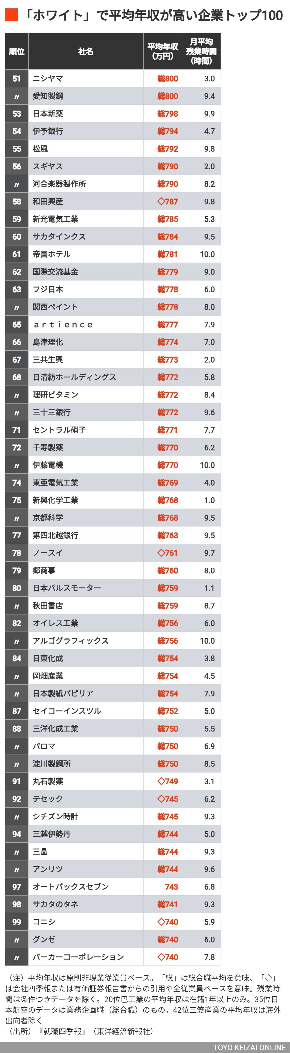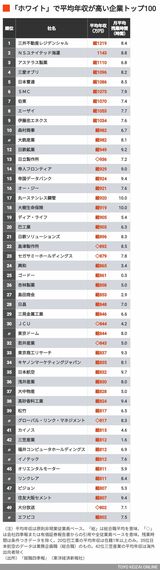 トップ10社は残業10時間以下で平均年収1000万円超!「ホワイト」で平均年収が高い企業ランキング100