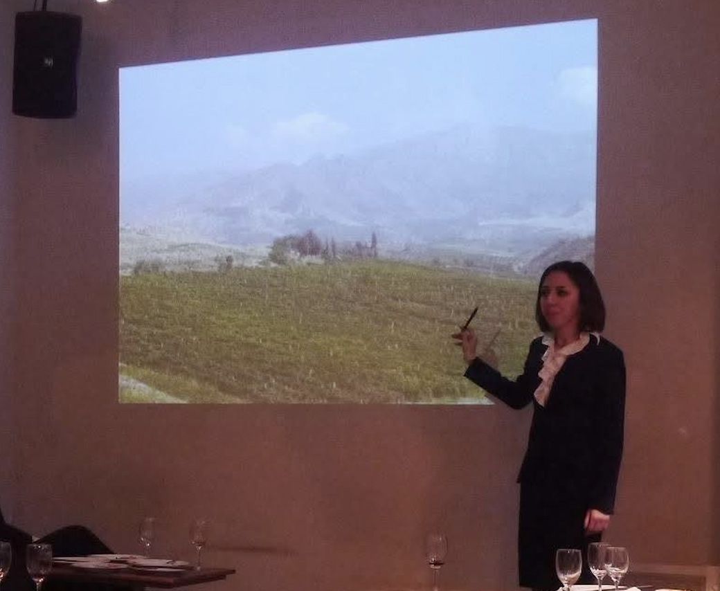 ウズベキスタンのワインを解説する風景(写真:オルズグル氏提供)