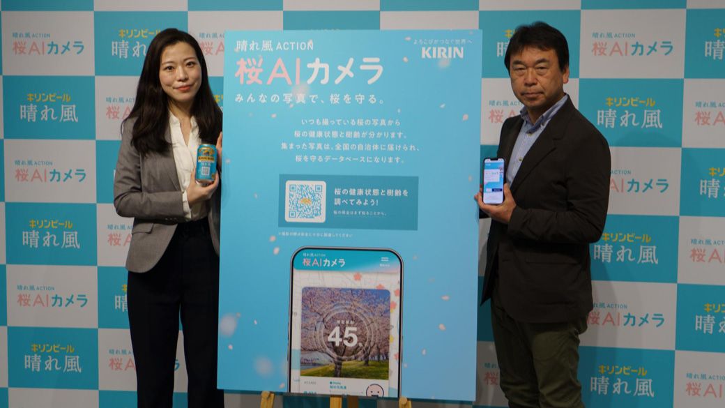 記事に戻る スマホで桜の健康診断──キリンビールの挑戦 「お花見文化」を未来へつなぐ、市民参加型のデータ収集プロジェクトの写真一覧 キリンのビールブランド「晴れ風」から「桜AIカメラ」というWebサービスが登場した(筆者撮影) 1/7 下に画像が続きます キリンビール マーケティング部の塩田梨沙氏(左)と日本樹木医会副会長の和田博幸氏(筆者撮影) 2/7
