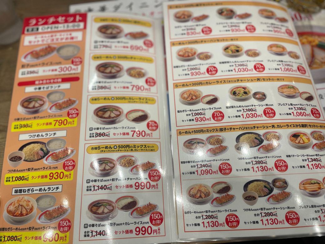 幸楽苑のメニュー表。セットメニューも魅力的だ(筆者撮影)
