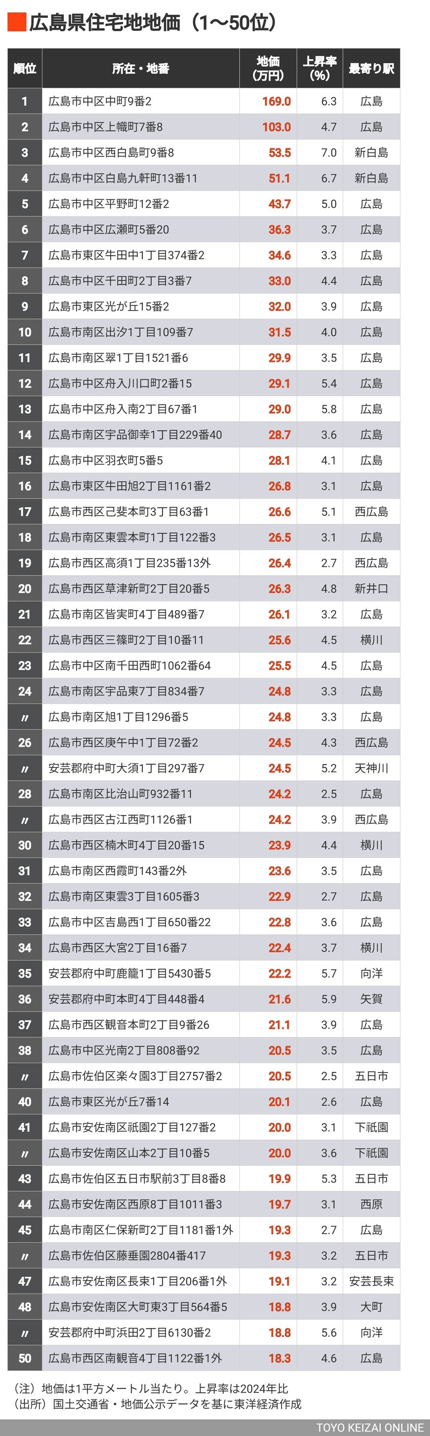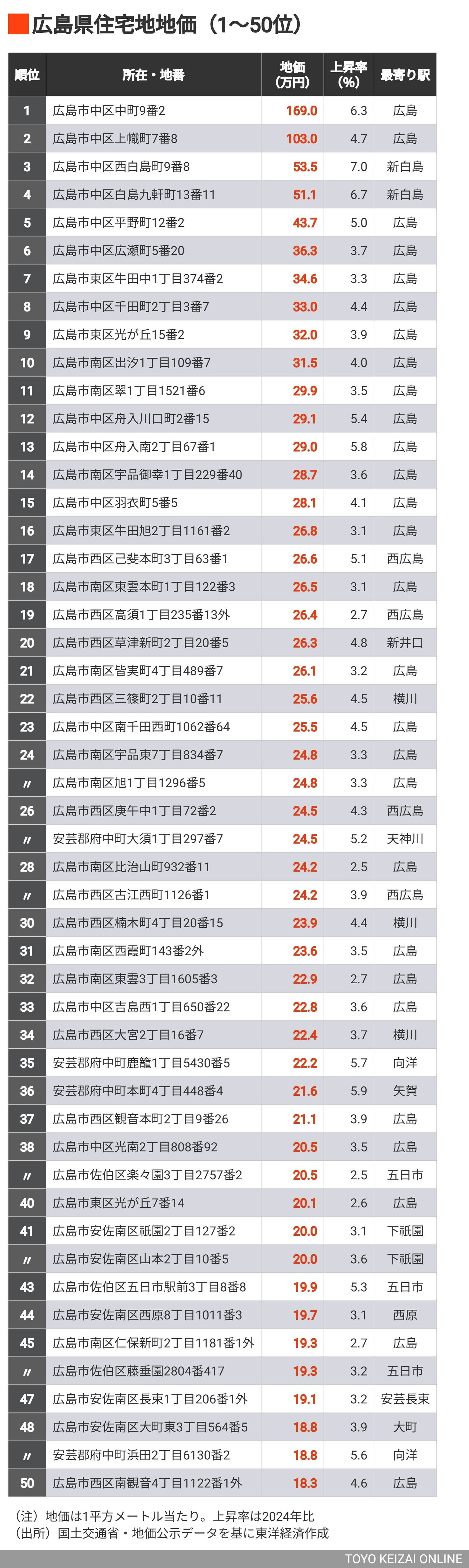 17位は西広島、3位が新白島、では1位は? 地価の高い「広島県の住宅地」トップ100地点【2025年版】の写真一覧