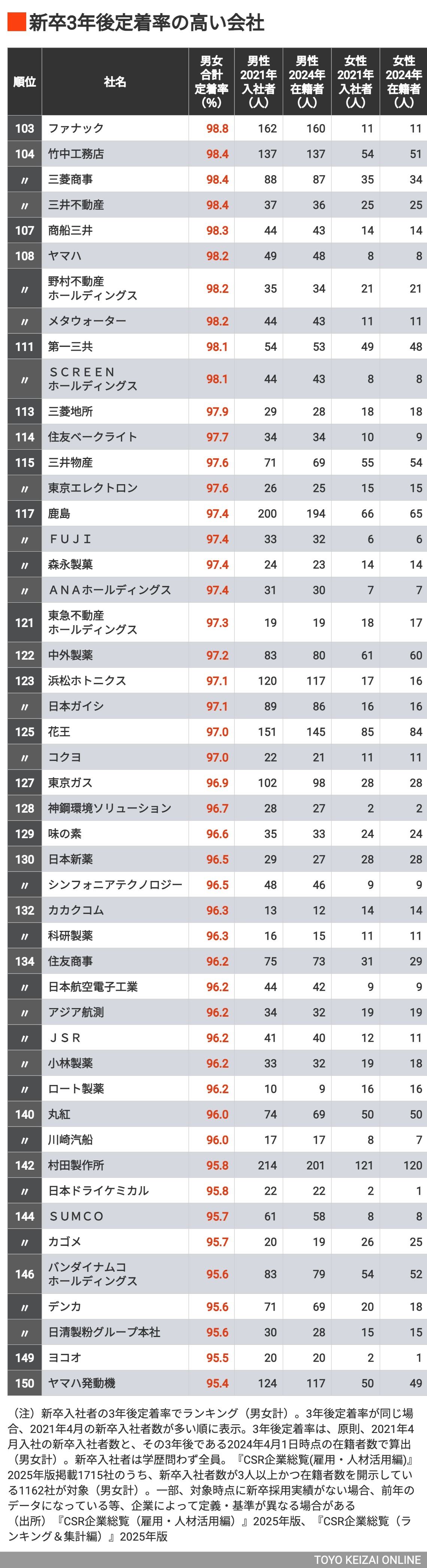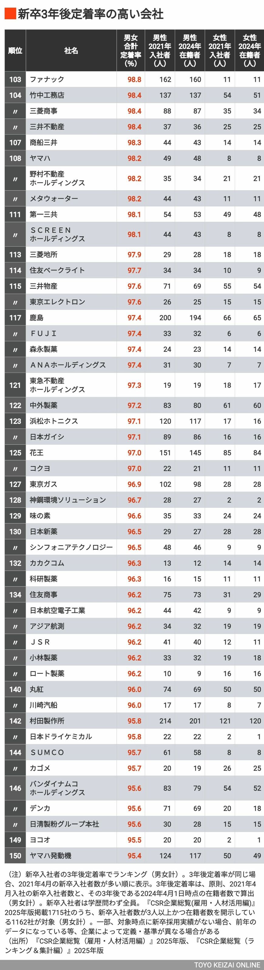 退職代行サービスが流行する時代でも「新卒社員の3年後定着率」が高い300社ランキングの写真一覧