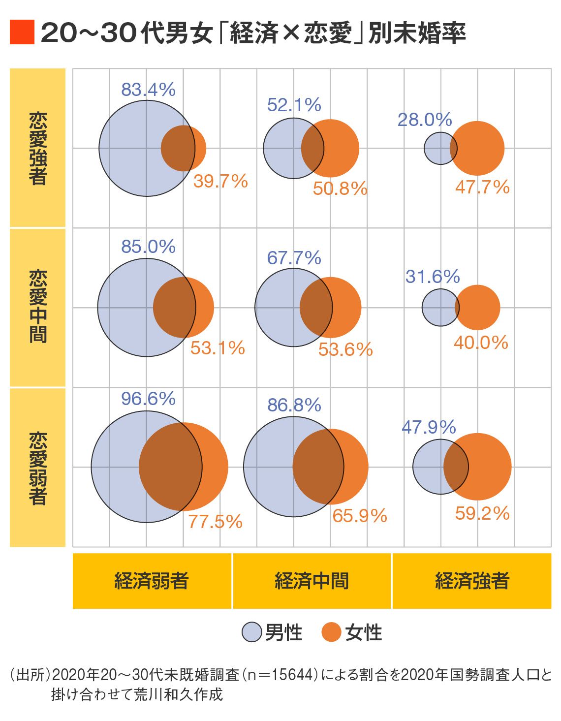 日本の少子化の要因は「若者の恋愛離れ」や「結婚意欲の低下」ではなく、経済的中間層の婚姻・出産の急減にあるとデータが示しています。恋愛経験や意欲に関わらず、結婚できるか否かを左右するのは経済力。未婚率の上昇、その背後にある本当の構造とは?