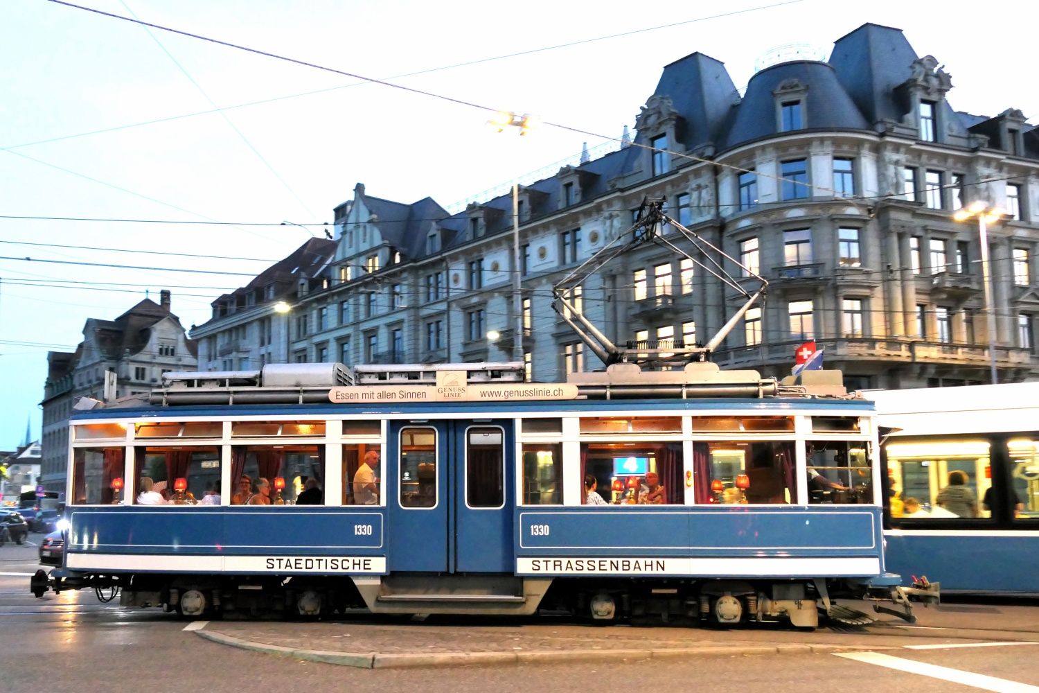 記事に戻る 「世界一物価が高い国」スイスの鉄道旅行攻略法 「トラベルパス」で2週間以上滞在がベストだが…の写真一覧 下に画像が続きます チューリッヒでは旧型トラムがレストラン車として運行(筆者撮影) 55/66