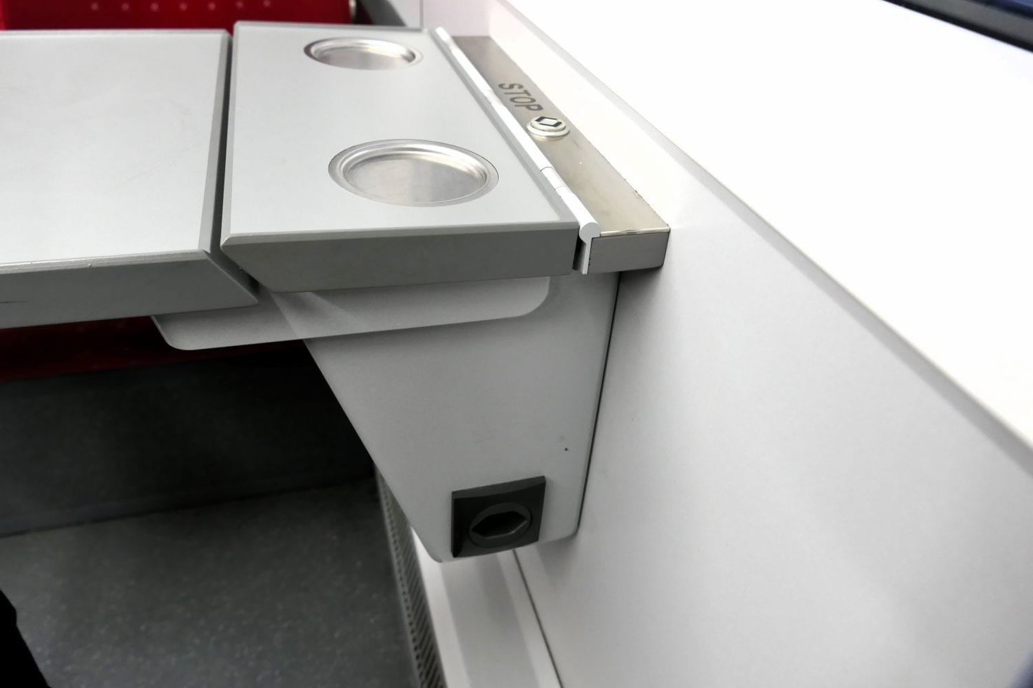 テーブル下部に見える黒い部分が電源ソケット(筆者撮影)