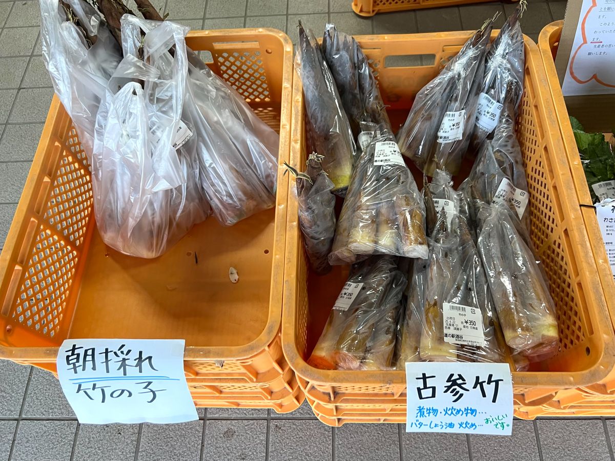 朝採れたけのこに古参竹も並ぶ(筆者撮影)