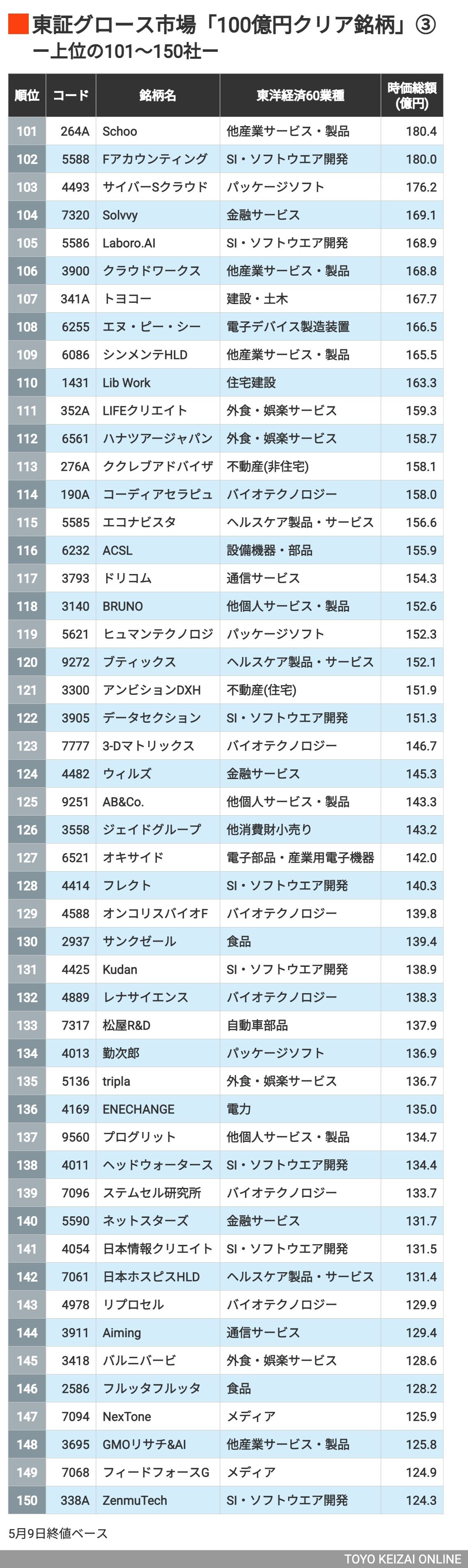 全上場銘柄のうち約30%だけの狭き門、東証グロース市場が検討している厳しい上場維持基準「時価総額100億円」をクリアしている188社とは?の写真一覧