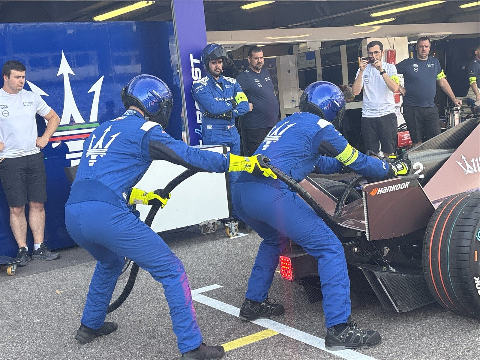 2025年より導入されたピット・ブーストの練習をするマセラティチーム(筆者撮影)