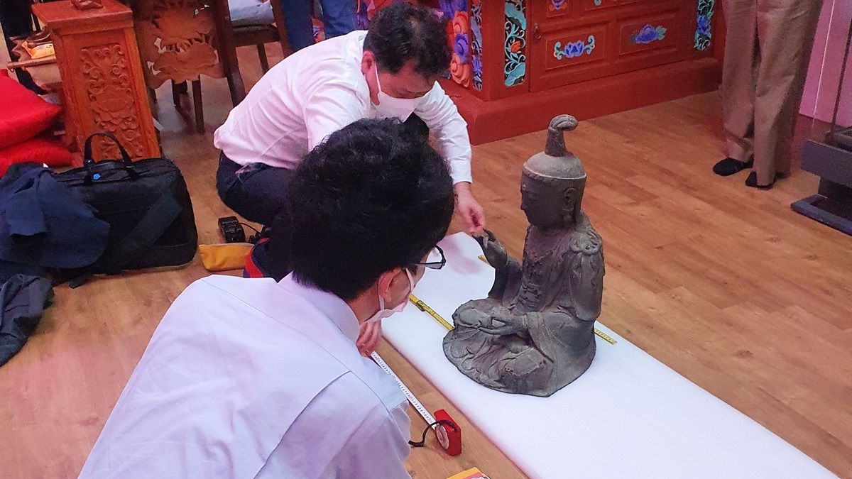 記事に戻る 韓国現地取材で見えてきた!対馬の盗難仏像"返還"が問いかける「文化財をめぐる常識」の非常識の写真一覧 浮石寺で執り行われた引き渡しの法要(写真:筆者撮影) 1/7 下に画像が続きます 日本の文化庁の調査官と長崎県の学芸員が現地で真贋鑑定と状態確認を実施(写真:筆者撮影) 2/7