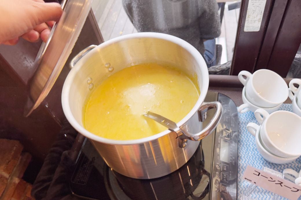 とろりと甘いコーンスープも飲み放題(筆者撮影)