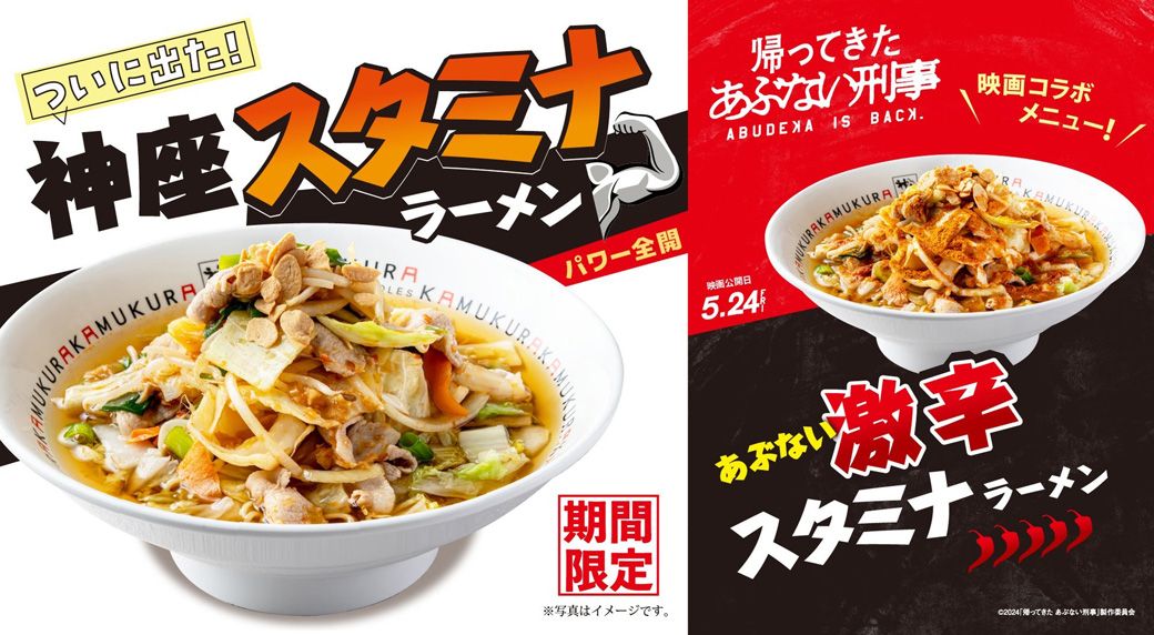 記事に戻る 「最近、神座をよく見るな…え、そんな変化があったの!?」 気づけば100店超え「どうとんぼり神座」。味を落とさず急成長が続く、納得の理由の写真一覧 下に画像が続きます 2024年には映画『帰ってきた あぶない刑事』とのタイアップも(写真提供:どうとんぼり神座) 7/16