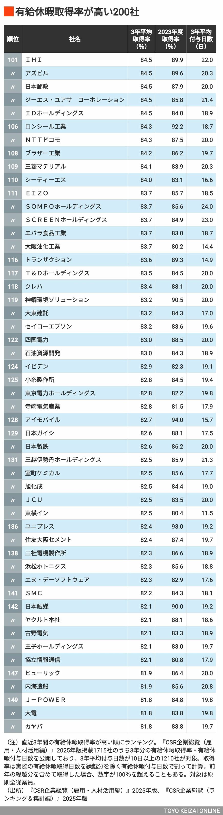 有給休暇の取得率が高い200社ランキング!10位ダイキン工業、9位ゆうちょ銀行…では8位以上は?の写真一覧