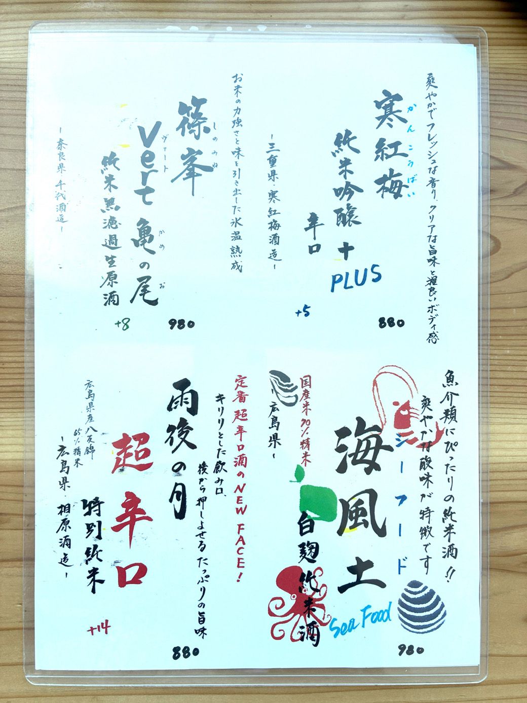 記事に戻る 「床に貝殻捨て放題」に関西人も驚く《行列天ぷらチェーン》がウメキタに! こんなおしゃれな空間でお手頃ランチを食べられちゃうんですか?の写真一覧 下に画像が続きます 季節替わりの日本酒が4種ラインアップ。酸味が爽やかで魚介類に好相性な「海風土(シーフード)」が津本社長のイチオシ 28/30