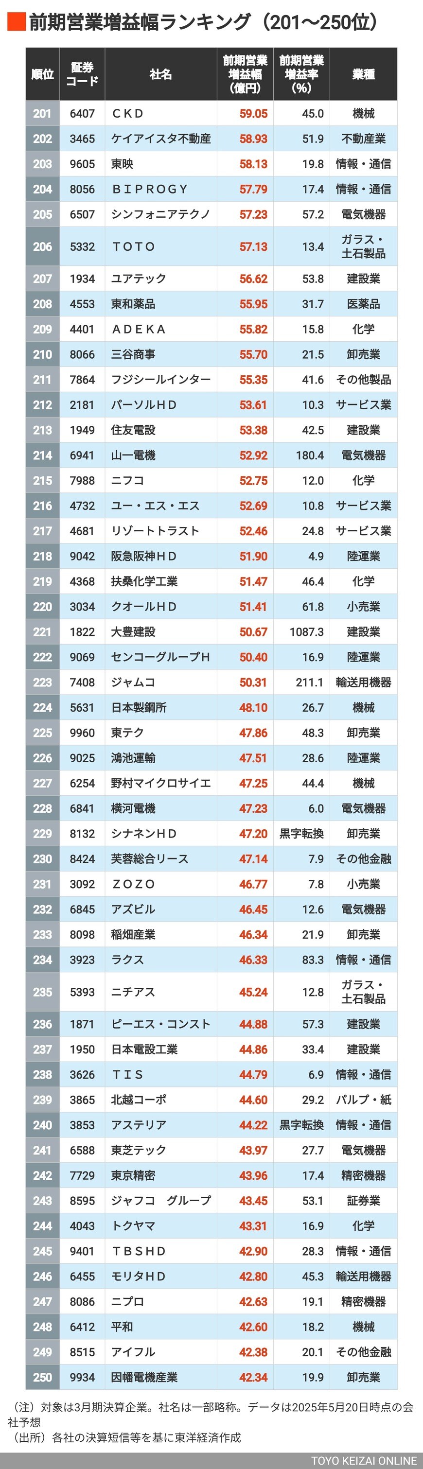 上位9社が増益率「1000%超」! 2024年度に営業利益が急増した3月期企業ランキング《増益率トップ250社》+《増益幅トップ250社》の写真一覧