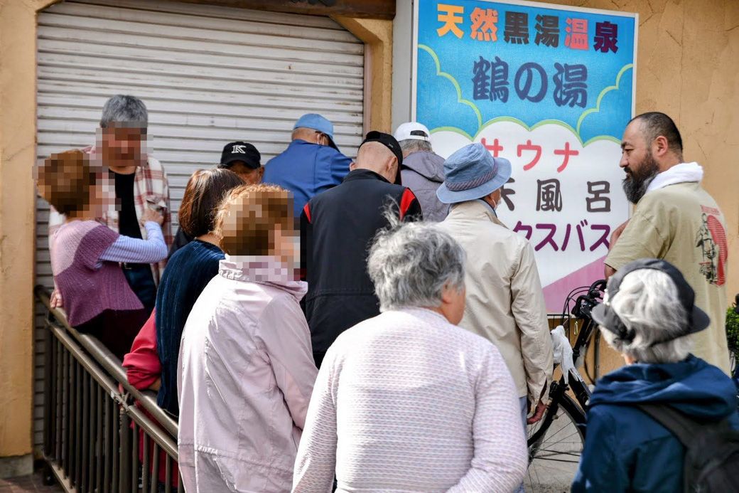 記事に戻る 「スカイツリー、東京タワー、その次は…?」 都内で3番目に高いタワーがあるのに誰も知らない街「江戸川区・船堀」の知られざる"実態"の写真一覧 下に画像が続きます 鶴の湯、開店前から集まる地域の銭湯ファン(筆者撮影) 12/16