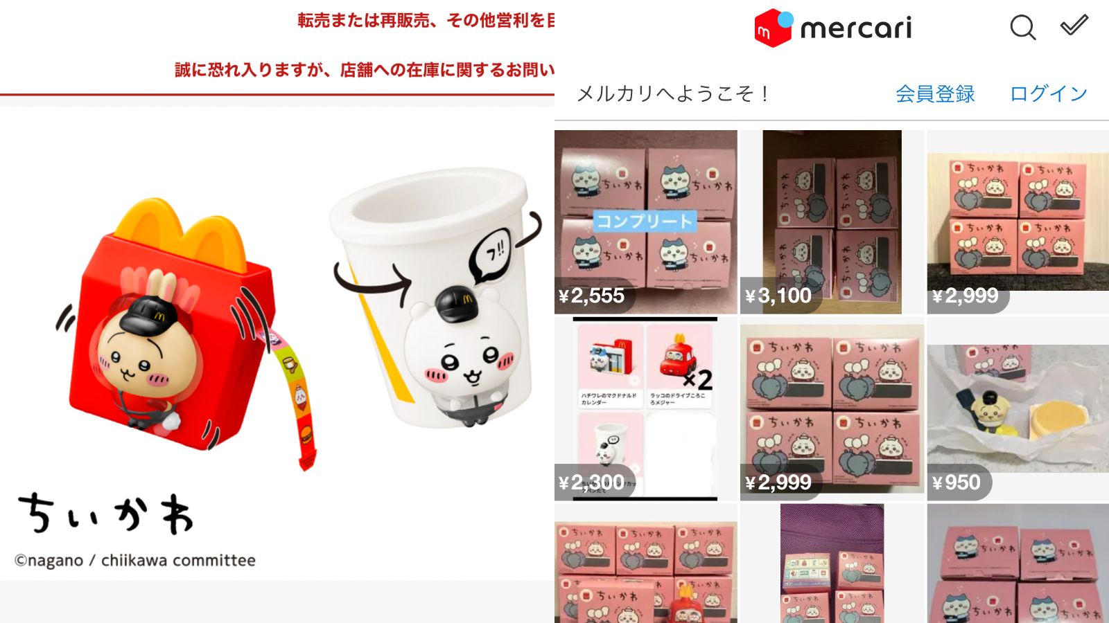記事に戻る 「また転売ヤーの仕業か…」「企業も対策してよ」日に日にヘイトが集まる“転売ヤー”は、なぜ日本で爆増したのか? 本人たちに聞いてみたの写真一覧 マクドナルドの「ハッピーセット」が転売ヤーのターゲットにされていると世間を騒がせています(写真左:日本マクドナルド公式サイト、右:メルカリサイトより) 1/4 下に画像が続きます フリマアプリで取引される大阪・関西万博のチケット(画像:メルカリサイトより) 2/4