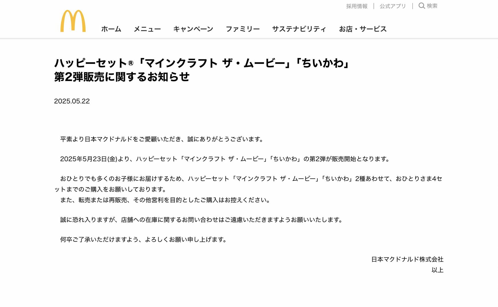 記事に戻る 「また転売ヤーの仕業か…」「企業も対策してよ」日に日にヘイトが集まる“転売ヤー”は、なぜ日本で爆増したのか? 本人たちに聞いてみたの写真一覧 下に画像が続きます マクドナルドは注意喚起を行ったが……(写真:日本マクドナルド公式サイトより) 4/4