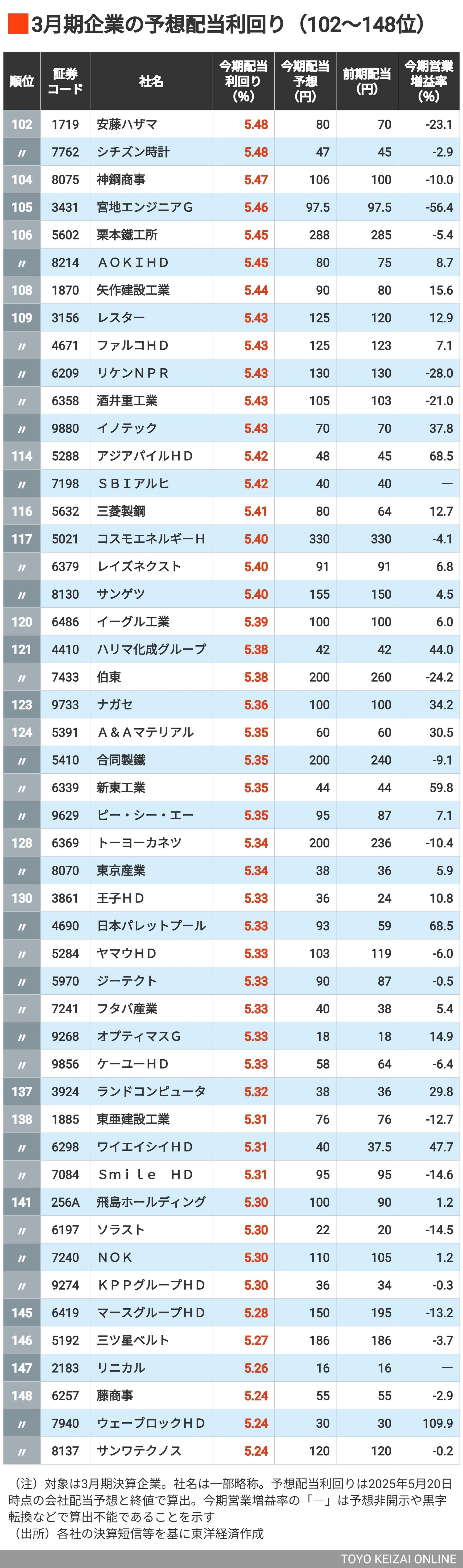 利回り「5%以上」は212銘柄! 2025年度の《予想配当利回りが高い》3月期企業ランキングTOP504の写真一覧