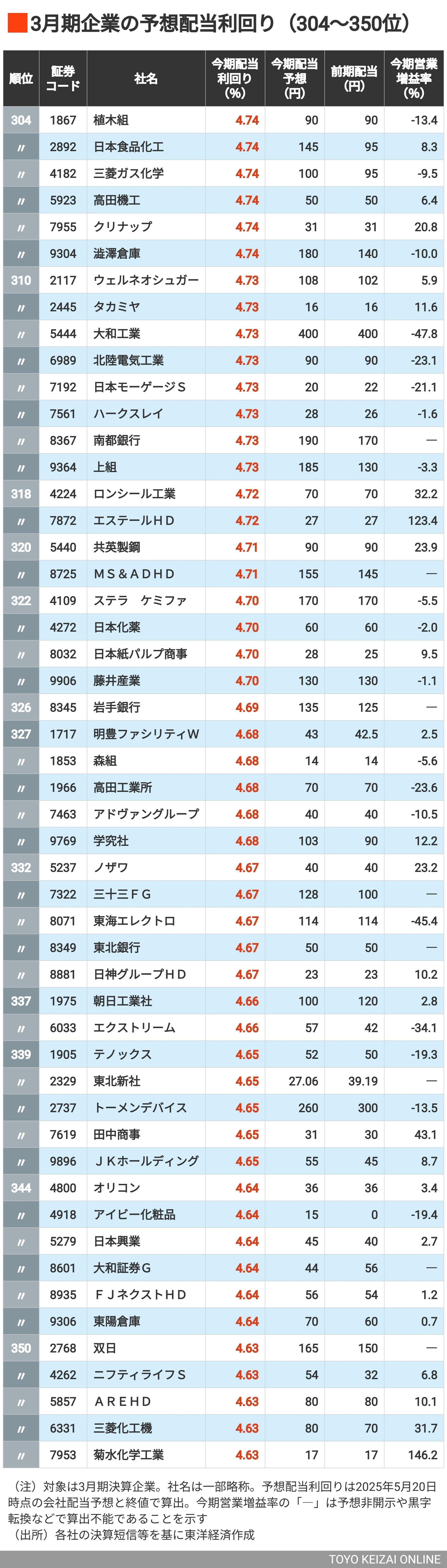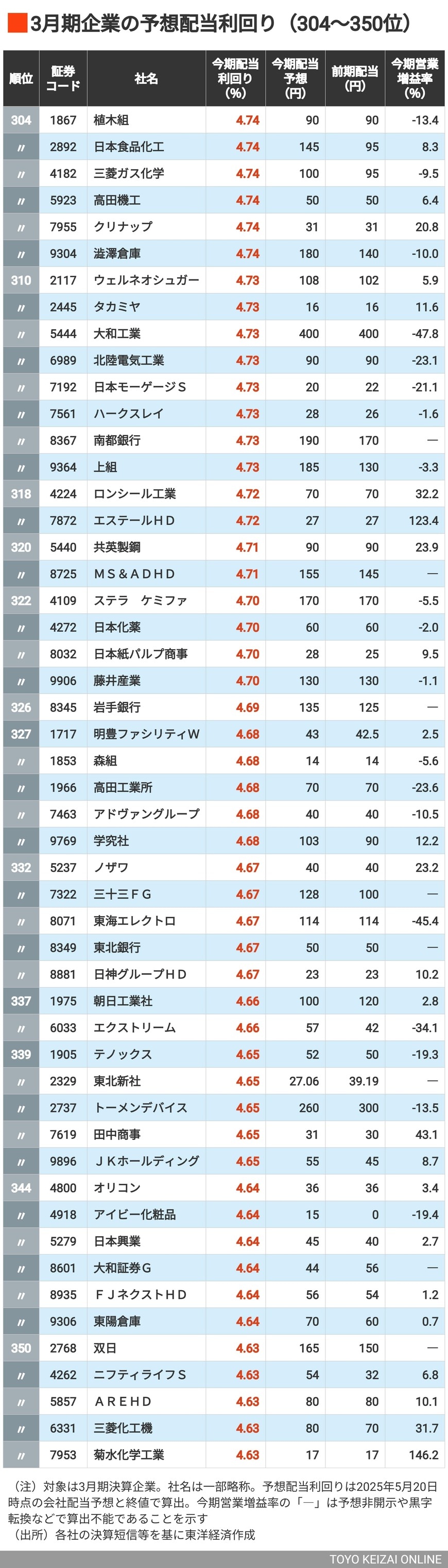 利回り「5%以上」は212銘柄! 2025年度の《予想配当利回りが高い》3月期企業ランキングTOP504の写真一覧