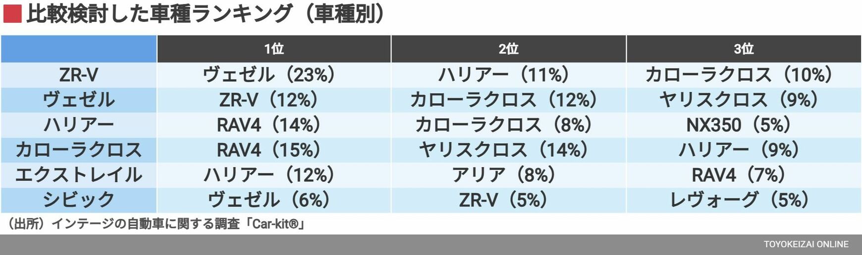 記事に戻る ホンダ「ZR-V」を選んでいるのはどんな人?「ハリアー」や「カローラ クロス」などの購入者データと比較分析の写真一覧 実質的に「CR-V」の後継モデルとして登場した「ZR-V」(写真:本田技研工業) 1/14 下に画像が続きます 画像を拡大 2/14