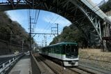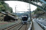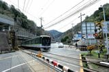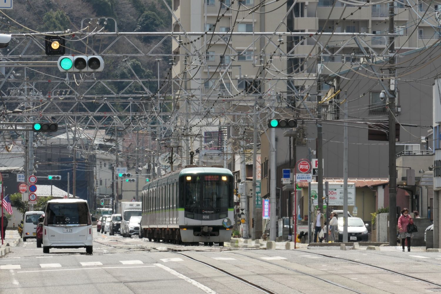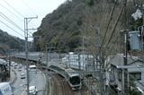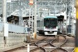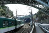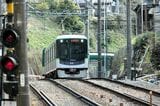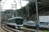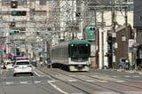 記事に戻る 京阪京津線800系、経験者だけが知る「運転のコツ」 急勾配・急曲線の山道、道路上で自動車と並走の写真一覧 下に画像が続きます 県道の専用軌道を下ってきたびわ湖浜大津行き(記者撮影) 26/44