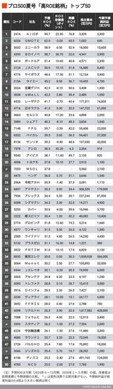 「効率的に利益を稼ぐ」銘柄トップ50、厳選された500企業から高ROE企業を絞り込み!上位に新規上場株が複数ランクイン
