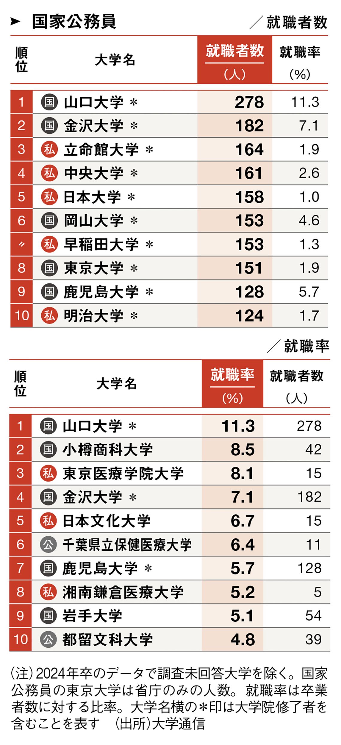 2025年最新版!「公務員への就職に強い大学」ランキング。国家公務員1位は2位を100人近く上回る