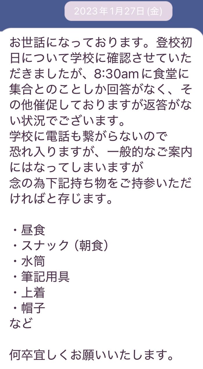 記事に戻る 「入学当日ですが、どこへ行けばいいのでしょう?」《マレーシアに教育移住》して驚いた"3つのこと"戸惑った「日本の常識とのギャップ」は?の写真一覧 マレーシアのインターナショナルスクール。カラフルな図書室(写真:筆者撮影) 1/4 下に画像が続きます エージェントから返ってきた返答(写真:筆者提供) 2/4