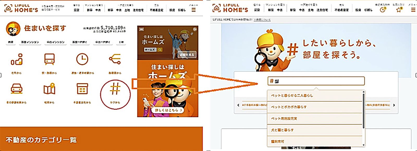 記事に戻る "ペット家族化"の時代でも「ペット可の賃貸物件は不足?」、現状を調べてみた。オーナーが感じるペット可物件の《メリットとデメリット》とはの写真一覧 下に画像が続きます LIFULL HOME'Sの物件検索画面(右がタグ検索)(画像:LIFULL HOME'S Webサイトより *一部を加工しています) 6/7
