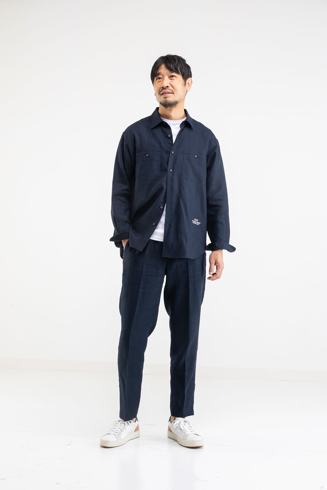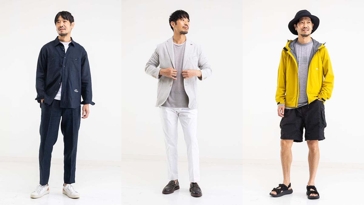 記事に戻る 夏服がスマートな人、そうでない人の決定的な差 「夏のシーン別」着こなし術 <旅行・会食・アウトドア、大人に「本当に必要な服」とは?>の写真一覧 正解がない私服は迷子になりがち。シーンに合った服をどう選べばいいか解説する。スタイリスト、モデルともに栃木雅広さん(撮影:今井康一) 1/6 下に画像が続きます シャツジャケット¥15,400、スラックス¥14,300(ともにデッサン) Tシャツ¥15,400(リサウンドクロージング) スニーカー¥30,800(アンビシャス)(撮影:今井康一) 2/6