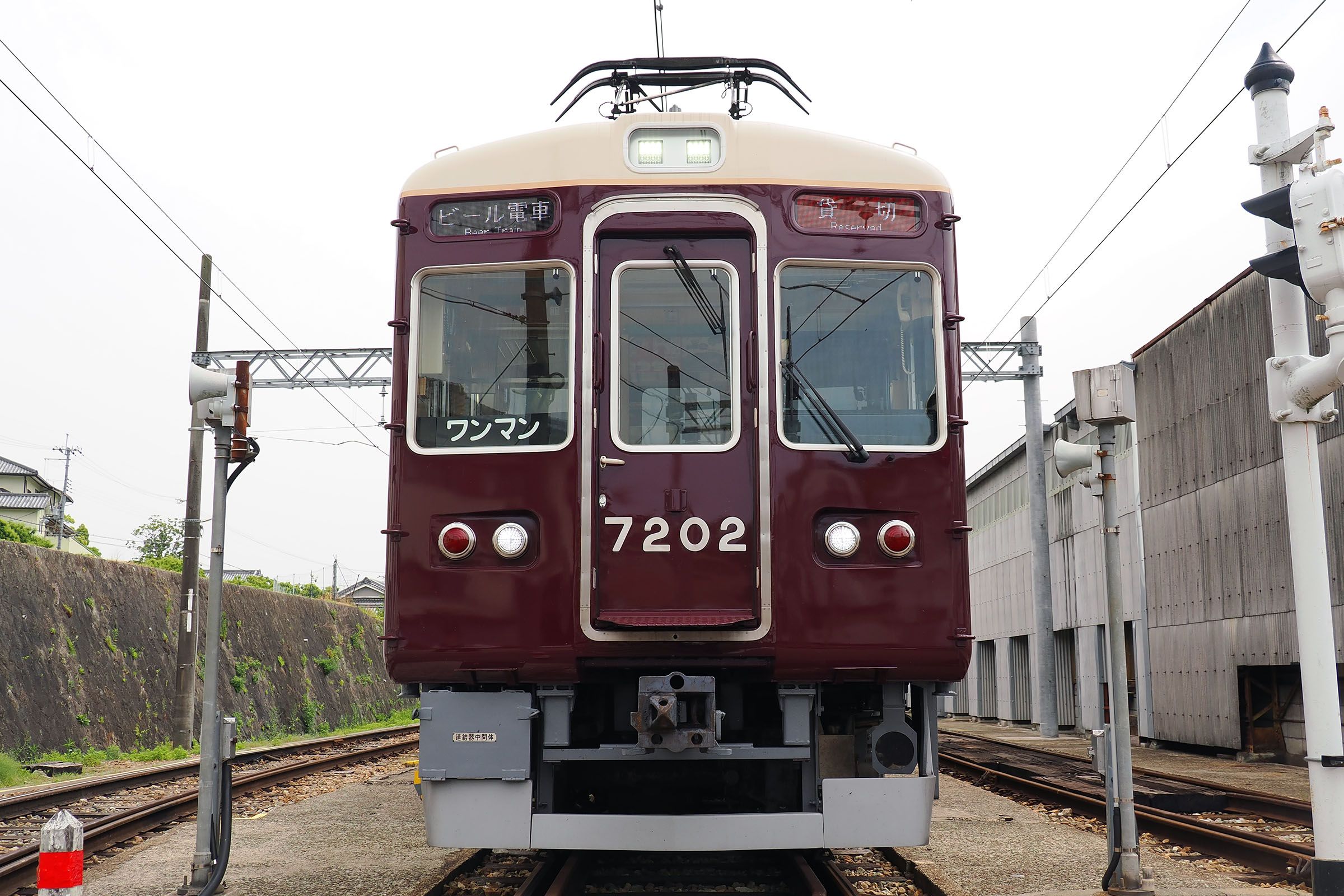 記事に戻る 能勢電鉄7200系「阪急時代」と何が変わったのか 4両編成車に加え2025年春に2両編成車が登場の写真一覧 下に画像が続きます 7200系4両編成車の前面。上部にはアイボリーと金の帯が入る(撮影:伊原薫) 3/31