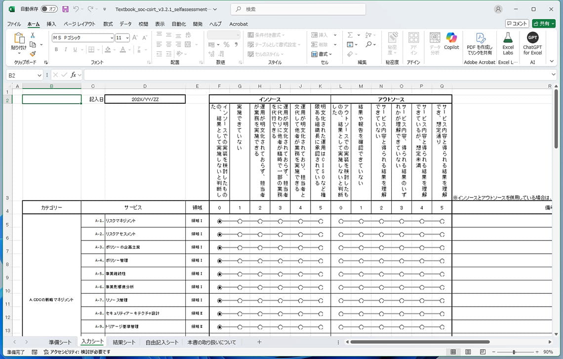 記事に戻る 会社の健康診断してる?「うちは狙われるような情報はない」が命取り、“プロの侵入成功率は9割以上”ランサムウェアに泣く前に脆弱性診断をの写真一覧 下に画像が続きます ISOG-Jが公開しているセルフアセスメントシート(写真:筆者提供)ダウンロードはこちら 4/4