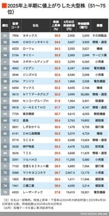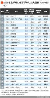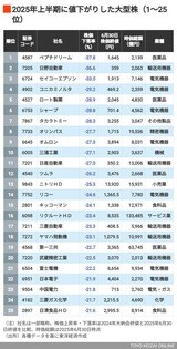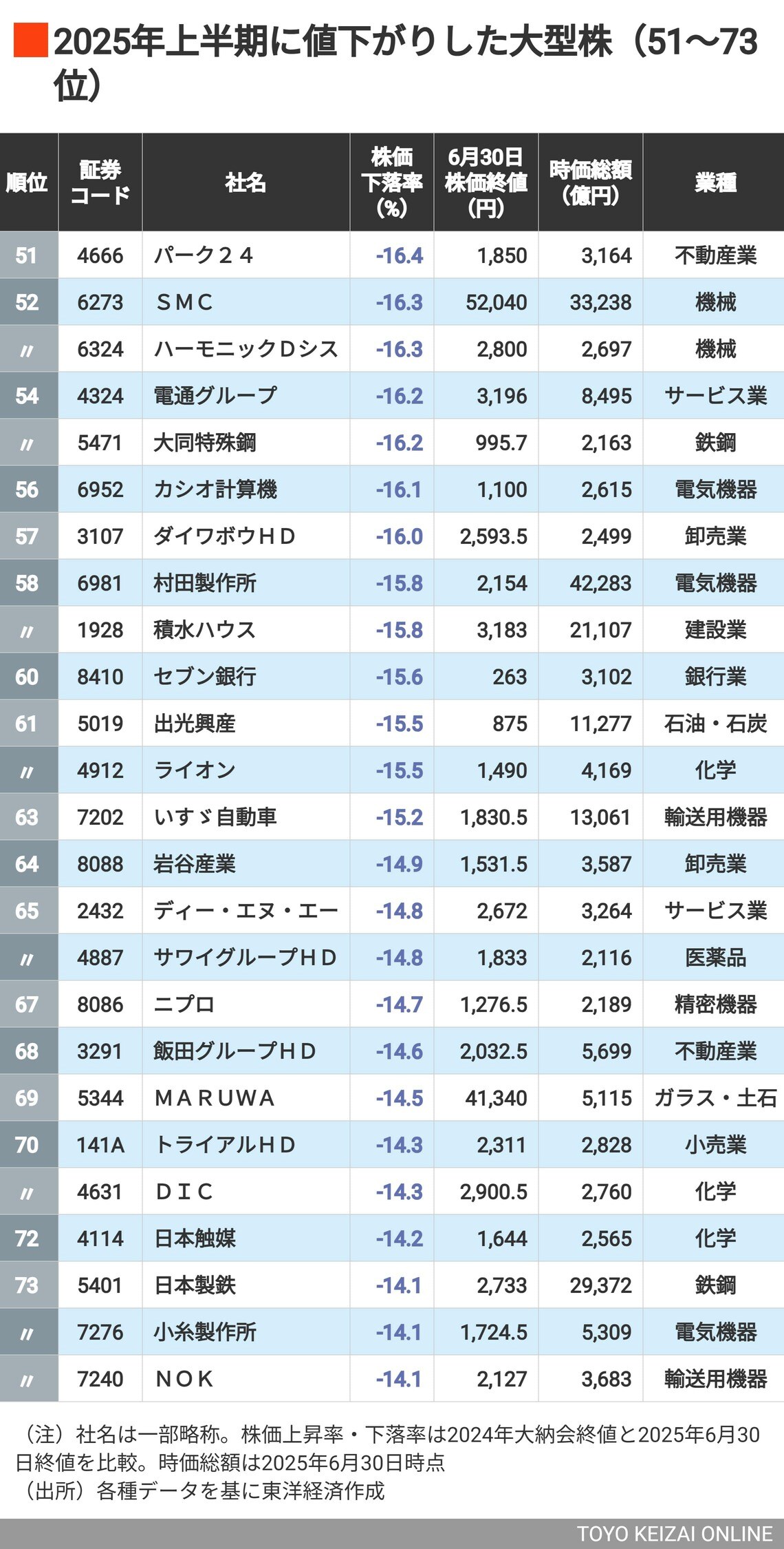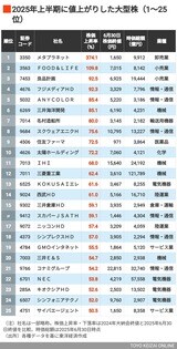 3位は無印、2位がスシロー、では1位は? 2025年上半期に株価が上昇&下落した「大型株」ランキング100+100社の写真一覧