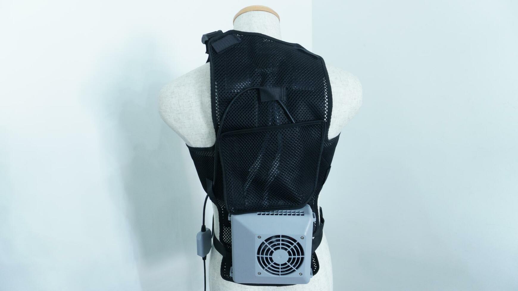 記事に戻る 猛暑の救世主なるか。ペルチェ素子で水を冷却・循環、上半身全体を冷やすウェア「ChillerX」が登場の写真一覧 冷却ウェア「ChillerX」(筆者撮影) 1/7 下に画像が続きます 筆者も体験。44度のサウナの中でも暑さを感じず過ごせた(シフトールのスタッフによる撮影) 2/7