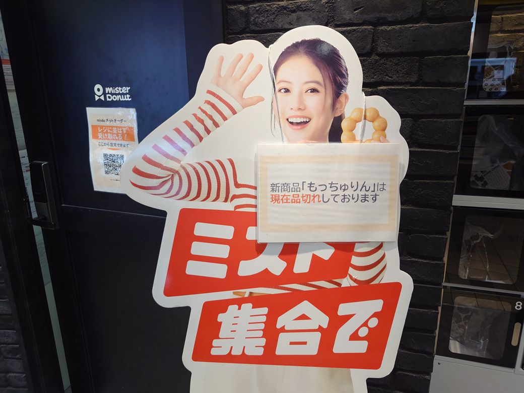 記事に戻る 「もっちゅりん」がバカ売れのミスド。「辻利」「ゴディバ」「ピエールマルコリーニ」のコラボ商品も話題、新商品で行列を作る戦略の”強さ”の写真一覧 「もっちゅりん」ドーム状ケース。イラストが印象的だ(筆者撮影) 1/16 下に画像が続きます CMキャラクターの今田美桜さん。等身大看板が「品切れ」表示掛けと化している(筆者撮影) 2/16