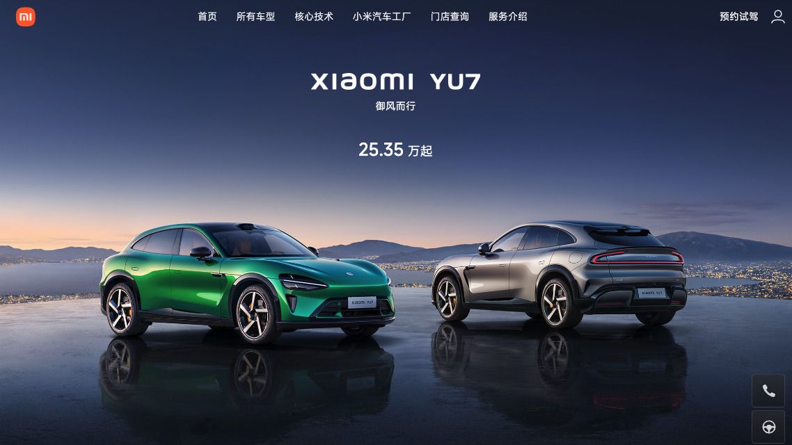 シャオミの第2号モデル「YU7」は、テスラのベストセラーSUV「モデルY」に真っ向勝負を挑む(写真は同社ウェブサイトより)