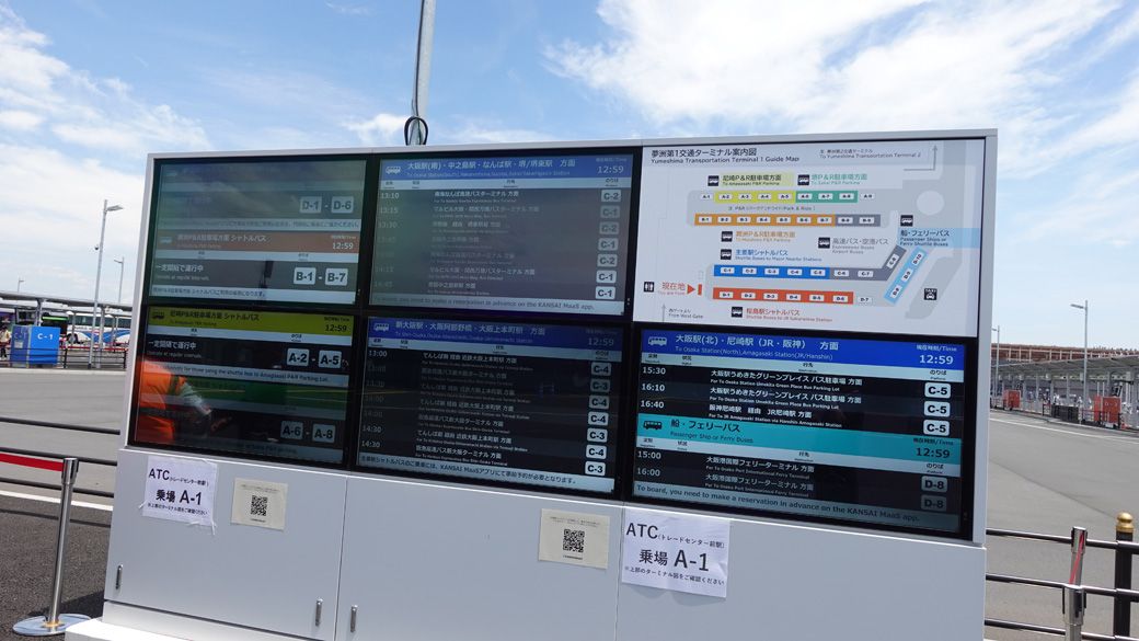 記事に戻る 万博で深刻化する《東ルート》の大混雑。"入場難民"を解消する《西ルート》4つの打開策を検証してみたの写真一覧 下に画像が続きます 西ゲートバス乗り場の配置図。コスモスクエア・トレードセンター行きのバス乗り場は右上の黄色・緑部分から発車する(筆者撮影) 12/13
